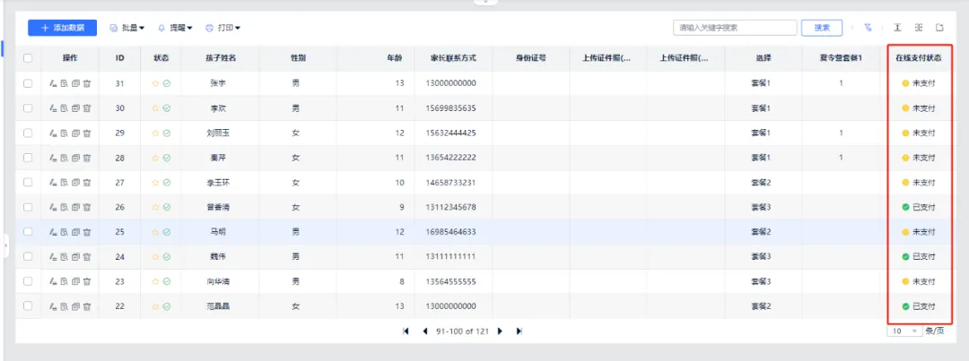 3.表单大师数据后台同步获取每个报名信息的支付状态,无须线下核对每笔款项。