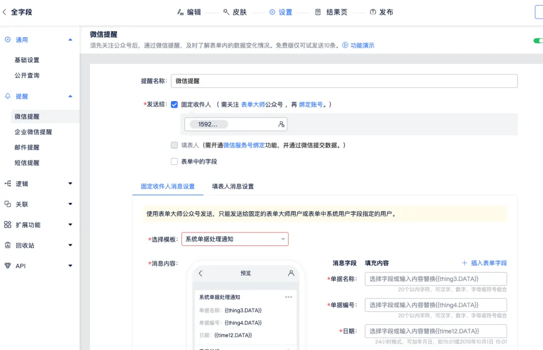 设置表单“只能在微信中填写”,并且“每个微信账号只允许提交1次”,避免家长重复提交,有效减少之前的补核操作。