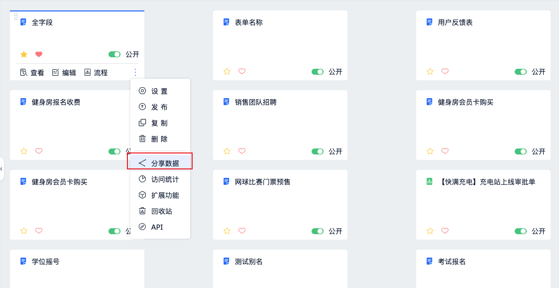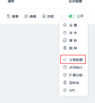 注意:表单列表上的分享数据设置只有管理员权限才可操作。