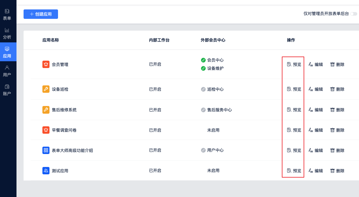 应用 > 应用列表