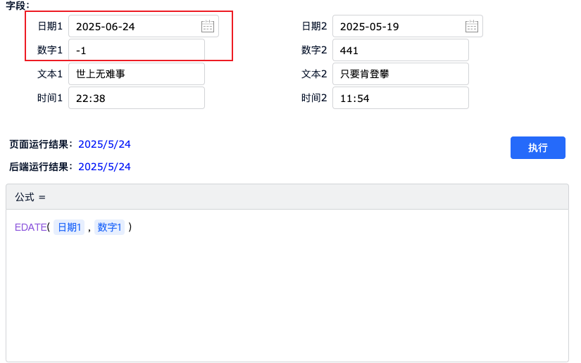 EDATE函数:可以计算与指定日期相隔(之前或之后)指定月份数的同一日期。之前或之后的月份数用正负值表示,为正值将生成未来日期;为负值将生成过去日期。返回日期若超出月末日则会为月末日。